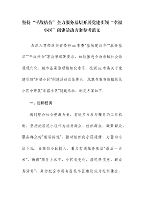 坚持“平战结合”全力服务基层开展党建引领“幸福小区”创建活动方案.docx