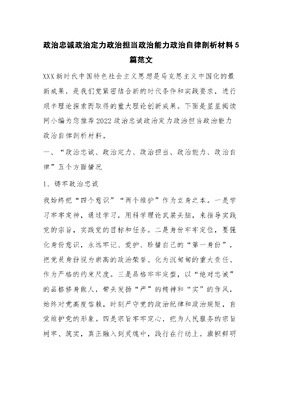 (5篇)政治忠诚政治定力政治担当政治能力政治自律剖析材料.docx