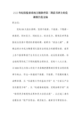 2023年纪检监察系统主题教育第二期读书班上的党课报告.docx