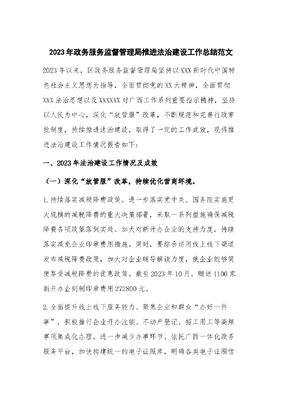 2023年政务服务监督管理局推进法治建设工作总结.docx