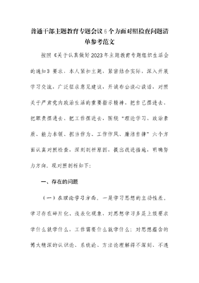 普通干部主题教育专题会议6个方面对照检查问题清单.docx