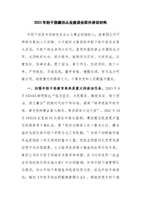 2023年轻干部廉洁从业座谈会即兴讲话材料.docx