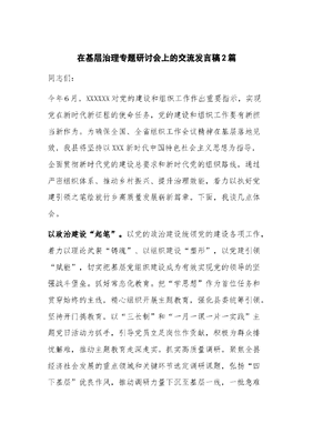 (2篇)在基层治理专题研讨会上的交流发言稿.docx