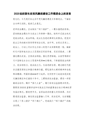 2023组织部长在党风廉政建设工作推进会上的发言.docx