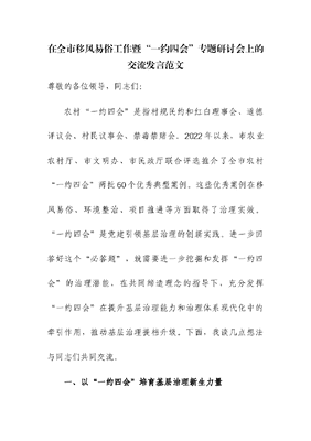 在全市移风易俗工作暨“一约四会”专题研讨会上的交流发言.docx