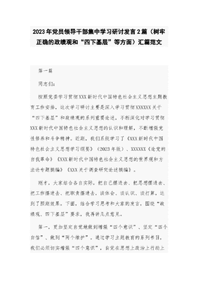 (2篇)2023年党员领导干部集中学习研讨发言(树牢正确的政绩观和“四下基层”等方面).docx