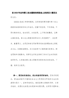 (2篇)在2023年全市第二批主题教育推进会上的讲话.docx