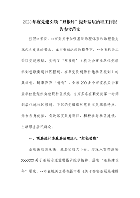 2023年度党建引领“双报到”提升基层治理工作报告.docx