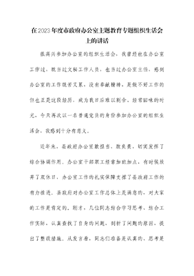 (2篇)在2023年度市政府办公室主题教育专题组织生活会上的讲话.docx