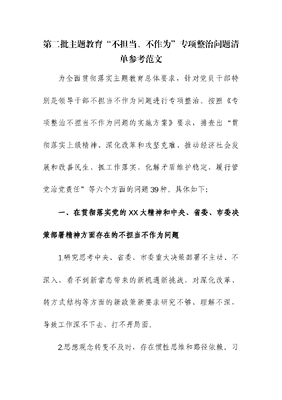 第二批主题教育“不担当、不作为”专项整治问题清单.docx