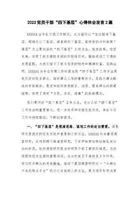(2篇)2023党员干部“四下基层”心得体会发言.docx