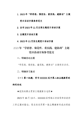 (4篇)2023年“学思想、强党性、重实践、建新功”主题党日11月份活动方案.docx