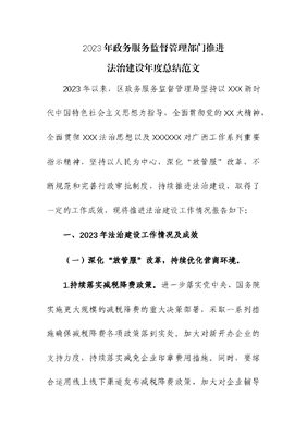 2023年政务服务监督管理部门推进法治建设年度总结.docx