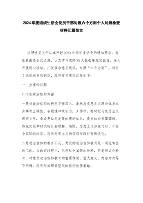 2024年度组织生活会党员干部对照六个方面个人对照检查材料汇篇.docx