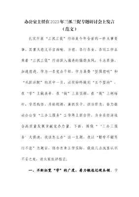 办公室主任在2023年三抓三促专题研讨会上发言.docx