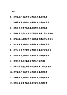 (14篇)2023年区委区级机关工委党委党支部书记抓基层党建述职报告(14个单位).docx
