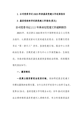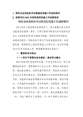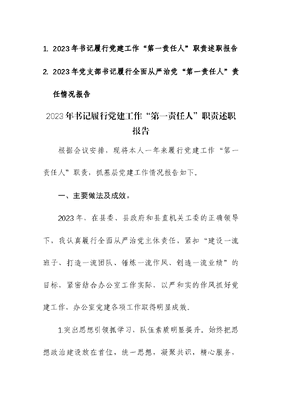 (2篇)2023年书记履行党建工作“第一责任人”职责述职报告.docx