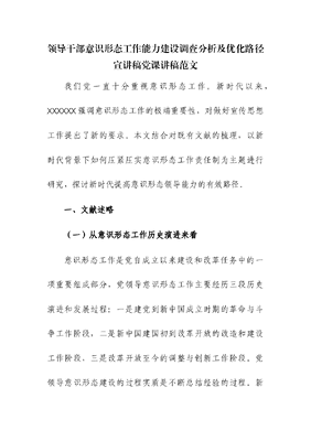 领导干部意识形态工作能力建设调查分析及优化路径宣讲稿党课讲稿.docx