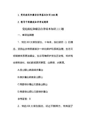 党纪政纪和廉洁自律基本知识和领导干部廉政知识考试题库400题.docx
