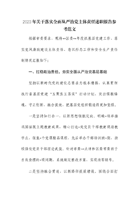 2023年关于落实全面从严治党主体责任述职报告.docx