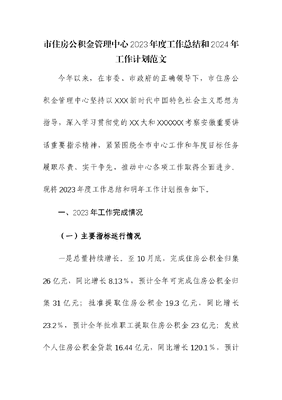 市住房公积金管理中心2023年度工作总结和2024年工作计划.docx