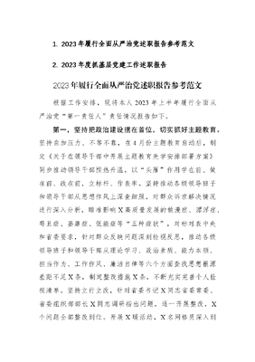 (2篇)2023年履行全面从严治党和度抓基层党建工作述职报告.docx