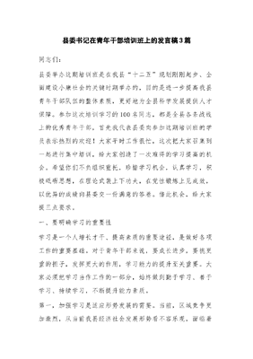 (3篇)县委书记在青年干部培训班上的发言稿.docx