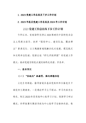 (2篇)机关2023党建工作总结及下步工作计划.docx