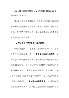 在第二批主题教育经验分享会上的汇报发言.docx