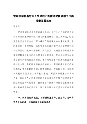 筑牢信仰根基 守牢人生底线 不断推动纪检监察工作高质量发展.docx
