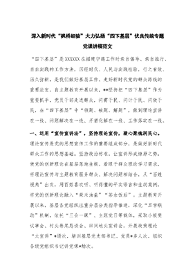 深入新时代“枫桥经验” 大力弘扬“四下基层”优良传统专题党课讲稿.docx