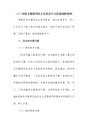 (2篇)2023年度主题教育民主生活会个人检视剖析材料.docx