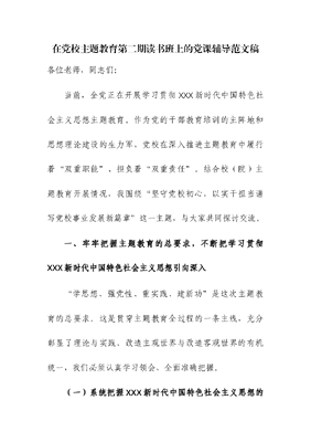 在党校主题教育第二期读书班上的党课辅导.docx