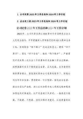 (2篇)企业纪委、纪工委2023年工作总结和2024年工作计划.docx