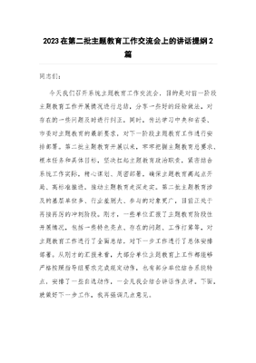 (2篇)2023在第二批主题教育工作交流会上的讲话提纲.docx