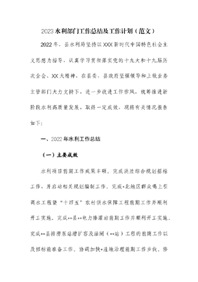 2023水利部门工作总结及工作计划.docx