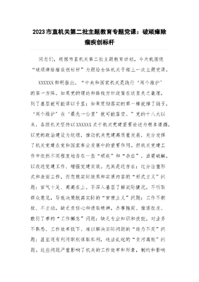2023市直机关第二批主题教育专题党课:破顽瘴 除痼疾 创标杆.docx