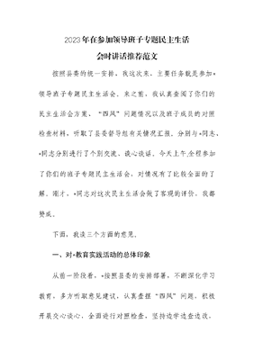 2023年在参加领导班子专题民主生活会时讲话.docx