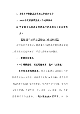 (3篇)党员干部抓基层党建工作述职报告及工作亮点.docx