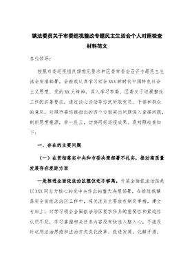镇法委员关于市委巡视整改专题民主生活会个人对照检查材料.docx