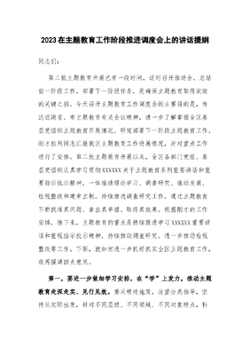 2023在主题教育工作阶段推进调度会上的讲话提纲.docx