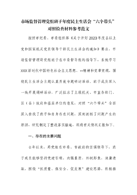 市场监督管理党组班子年度民主生活会“六个带头”对照检查材料.docx