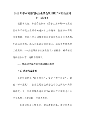 2023年市水利部门民主生活会领导班子对照检查材料.docx