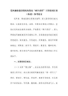 党风廉政建设情况及落实“两个责任”工作情况汇报(街道).docx