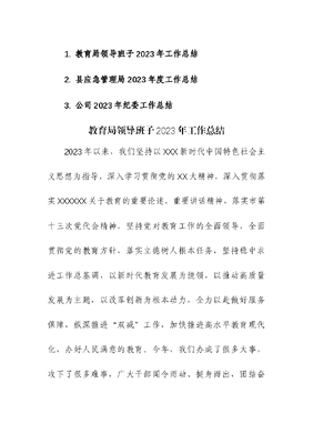 (3篇)教育局领导班子、应急管理局、公司纪委2023年工作总结.docx