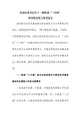 国企纪委书记关于一体推进“三不腐”研讨体会发言.docx