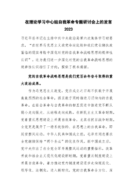 在理论学习中心组自我革命专题研讨会上的发言2023.docx