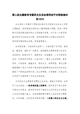 第二批主题教育专题民主生活会领导班子对照检查材料2023.docx