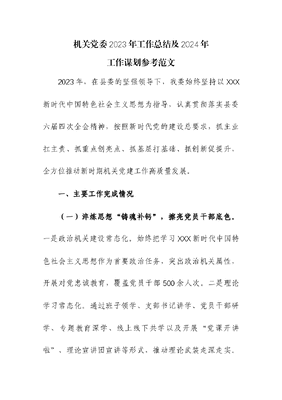 机关党委2023年工作总结及2024年工作谋划.docx