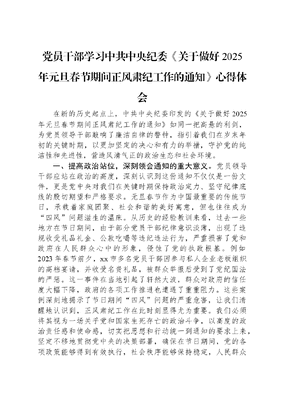 党员干部学习中共中央纪委《关于做好2025年元旦春节期间正风肃纪工作的通知》心得体会.docx